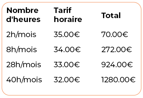 Comme chaque prestation est réalisée sur mesure pour vous, contactez-moi, afin que je réalise un devis correspondant à vos besoins.